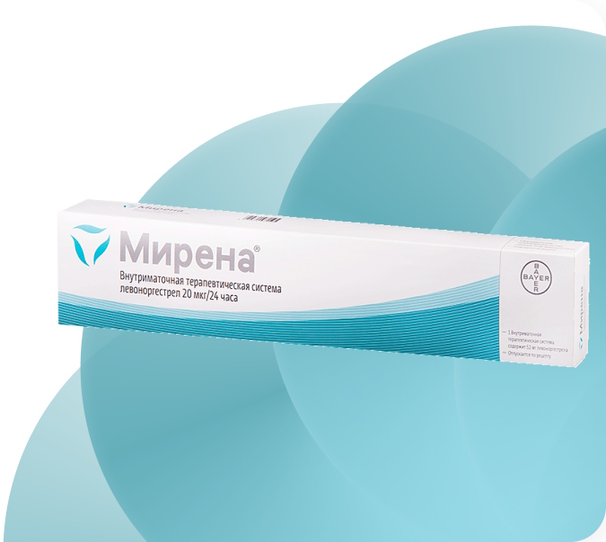 Мирена — внутриматочный контрацептив. Представляет собой Т-образную эластомерную систему (устройство), вертикальный стержень которой состоит из левоноргестрелсодержащего контейнера, покрытого специальной мембраной, через которую непрерывно происходит контролируемая диффузия левоноргестрела по 20 мкг/сут (в начальный период).
